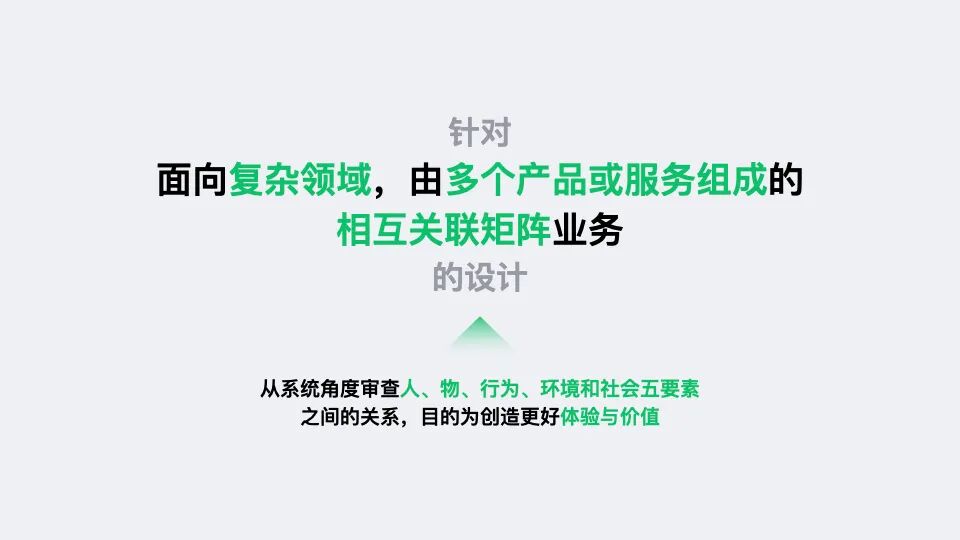 而在互联网领域的设计中,随着行业不断发展,设计对象及范畴在不断变化并扩大,要解决的问题,面临的设计场景也越来越复杂。从最简单的界面,到产品、服务,当业务体量足够大的时候,就会发展为生态,比如围绕某款游戏的生态、微信生态等等。而交互设计师需要关注的设计点也在逐渐增多、扩大:包含布局、逻辑、架构、链路、系统。