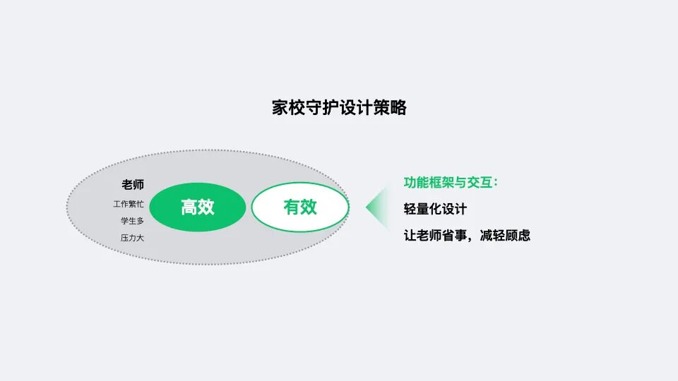 于是针对这一场景的设计策略就是要高效、有效,整体方案需要轻量化,尽量让老师省事,减少他们的顾虑和负担。