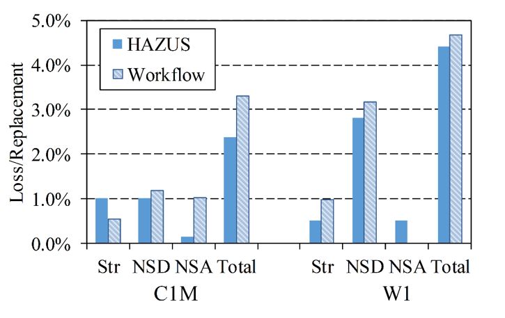 2.与广泛使用的区域建筑震害分析方法HAZUS相比,SimCenter Workflow能提供更为详细的震损分析结果;