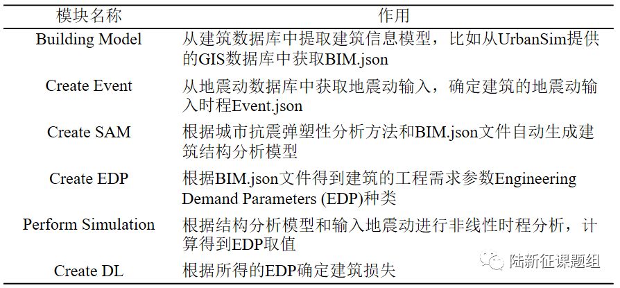 表1 SimCenter Workflow各个模块介绍