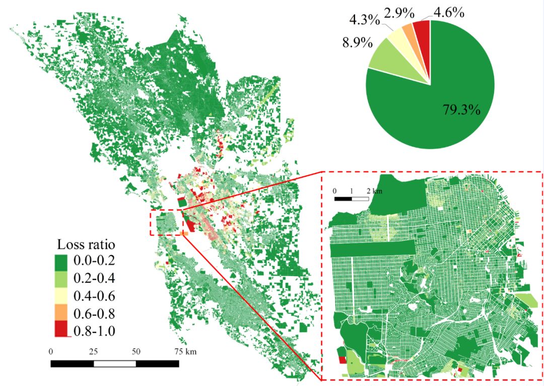 图13 旧金山湾区180万栋建筑损失比分布