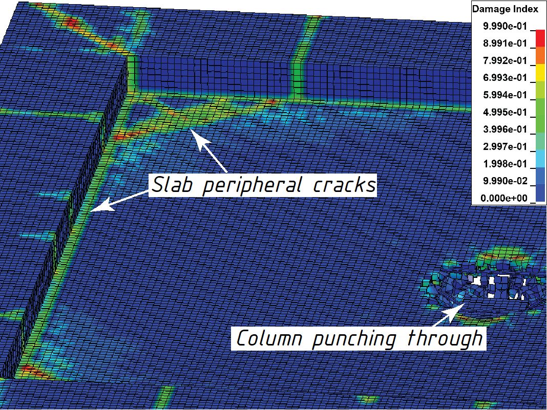 1. 板柱节点的弯曲行为不受冲切破坏面发展的影响,但最终的冲切破坏取决于板柱节点的受弯变形能力。
