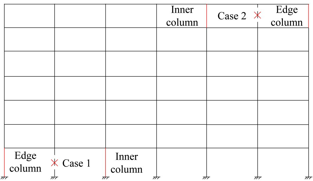 图2 次边缘柱失效场景(底层和顶层次边缘柱分别失效)