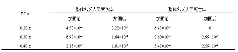 表6 清华园整体名义人员伤亡率中位值加固前后对比