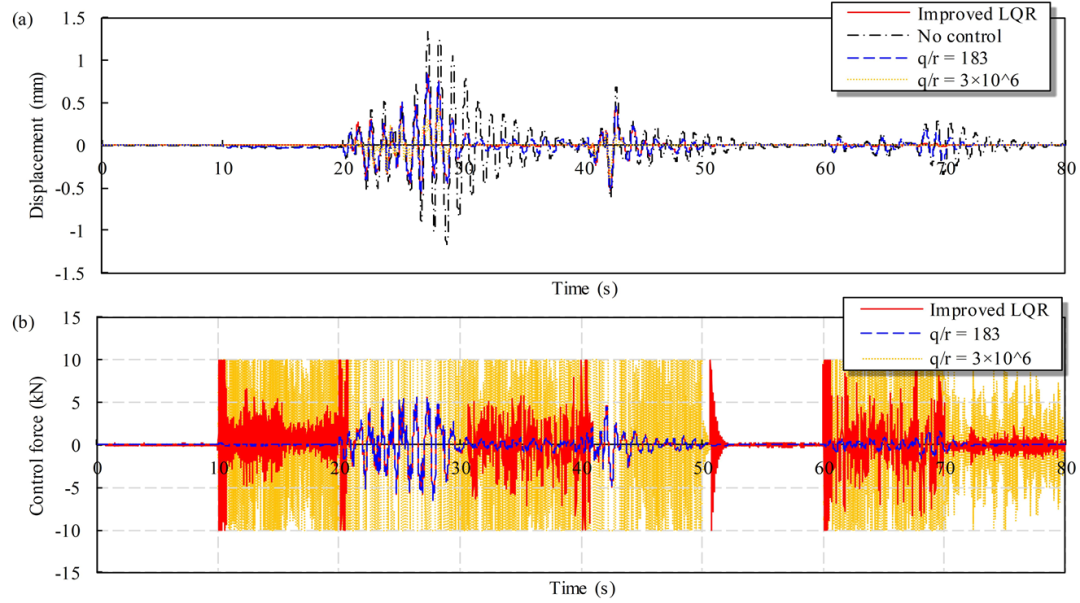 本研究提出了结合CNN对振动进行识别,从而选择最优的Q、R系数矩阵的改进LQR控制方法,案例分析验证了该改进方法的优势。具体结论如下: