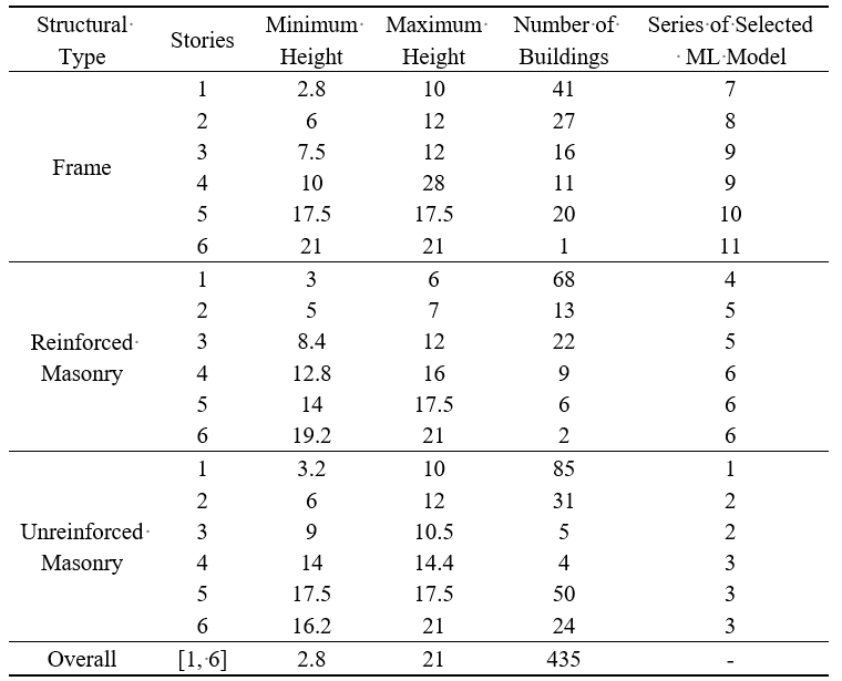 由于高层、超高层建筑数目较少,且设计、施工要求严格,安全余量一般较大,因此本研究暂不涉及高层、超高层建筑,也未将主要在高层、超高层建筑中应用的剪力墙结构、框架-核心筒结构、筒中筒结构等纳入考虑。未来,可以进一步的针对上述建筑开展研究。