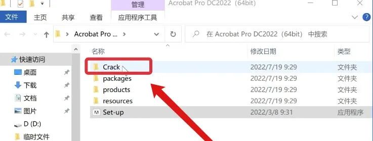 5、回到桌面打开解压后的【Acrobat Pro DC2022(64bit)】文件夹,双击打开【Crack】文件夹。