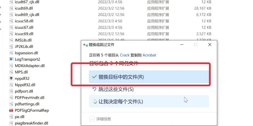 9、点击【替换目标中的文件】。