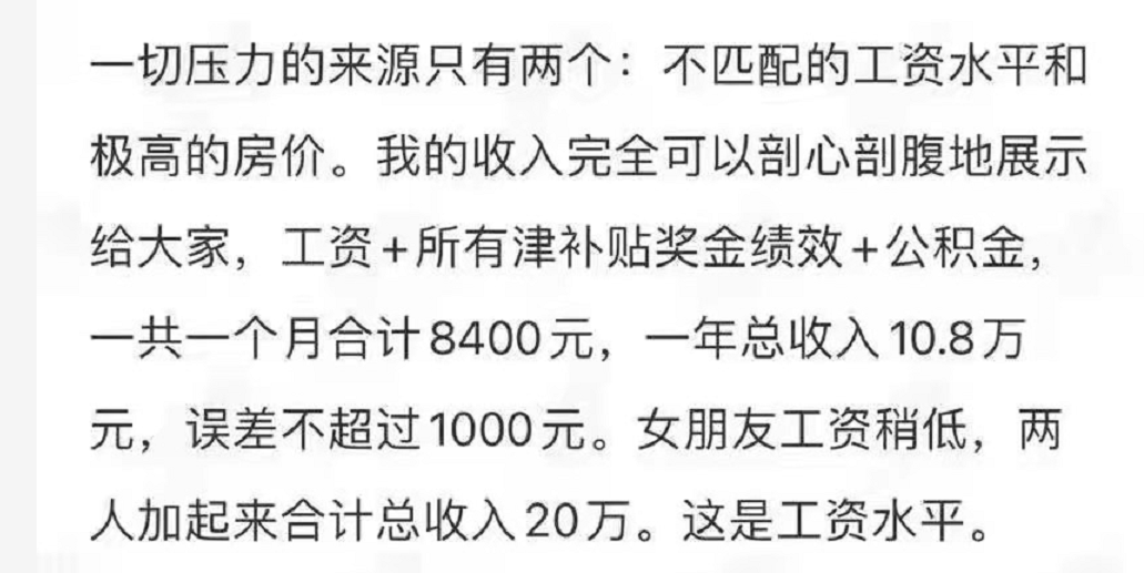 显然,这个警察网友所写下来的东西,只会让那个网友更坚定离开北京的决心,没办法,他和女朋友那么高的学历,那么好的福利条件,依然还是在北京要买不起房子,如果要买房子,就要养不起孩子了。