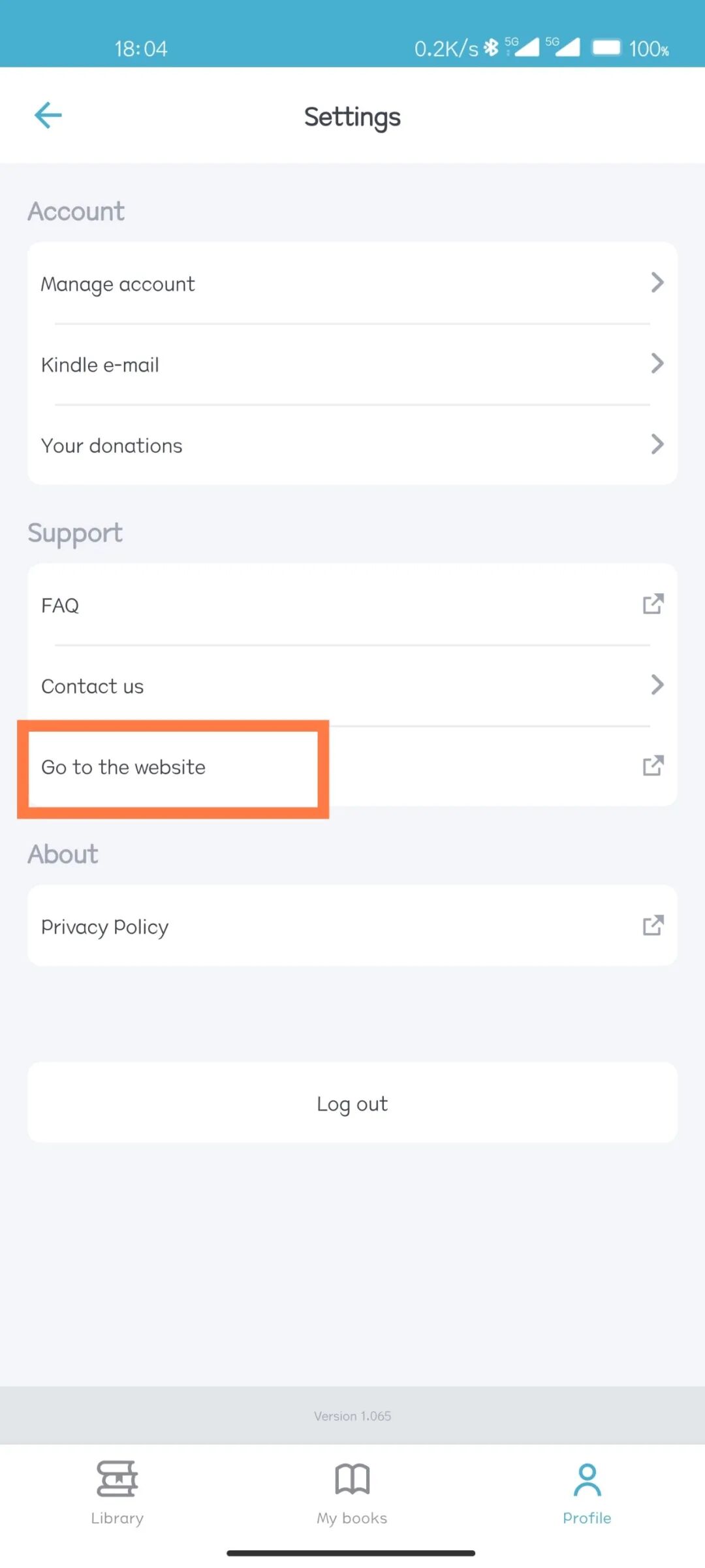 点击右上角的设置按钮,进入设置界面,可以点击“ go to the website ”,访问 Z-library 的网页版,这也算是获取最新网址的方法了