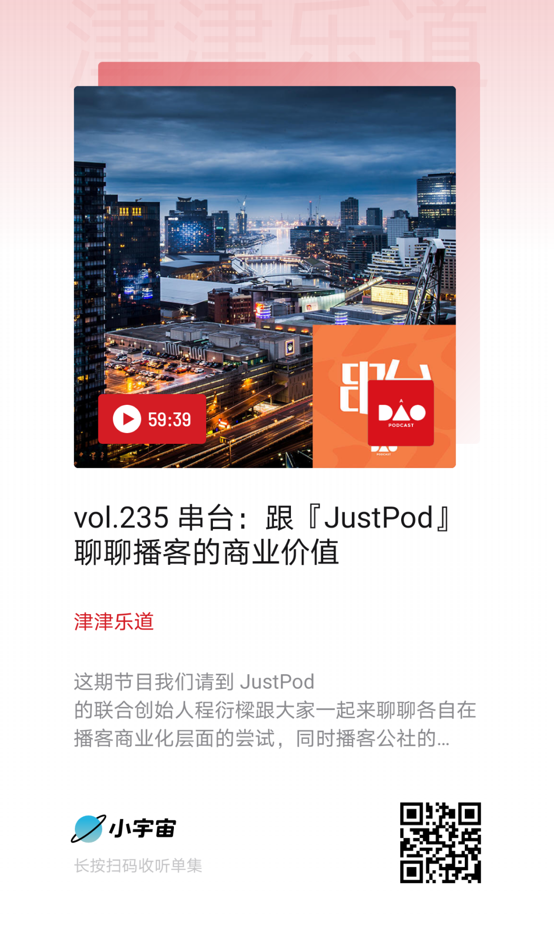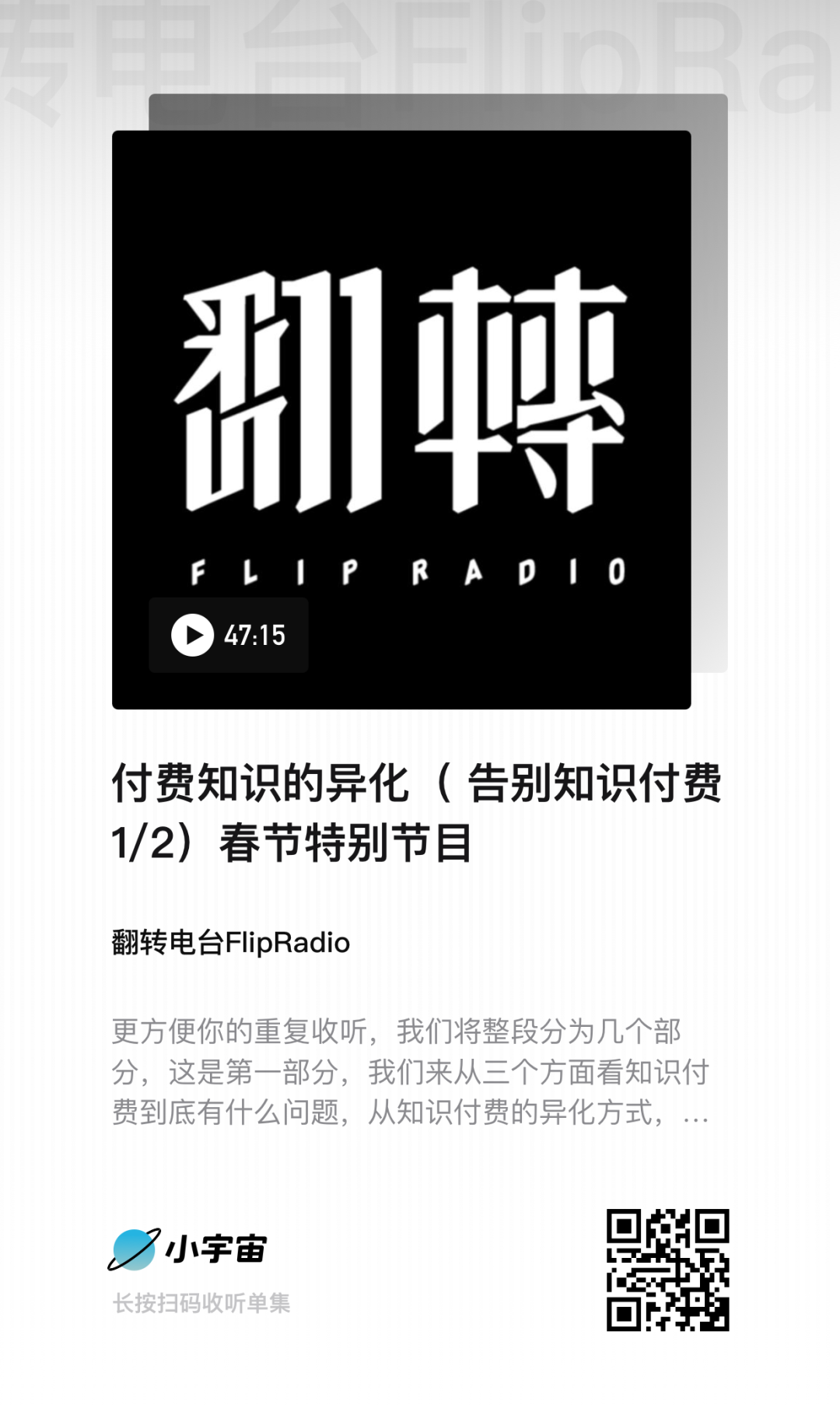 大家喜欢并认可播客的主要原因,是因为它跟一般的知识付费不一样,播客能给听众的东西相对而言比较轻松、没有结构化、也不刻意体系化