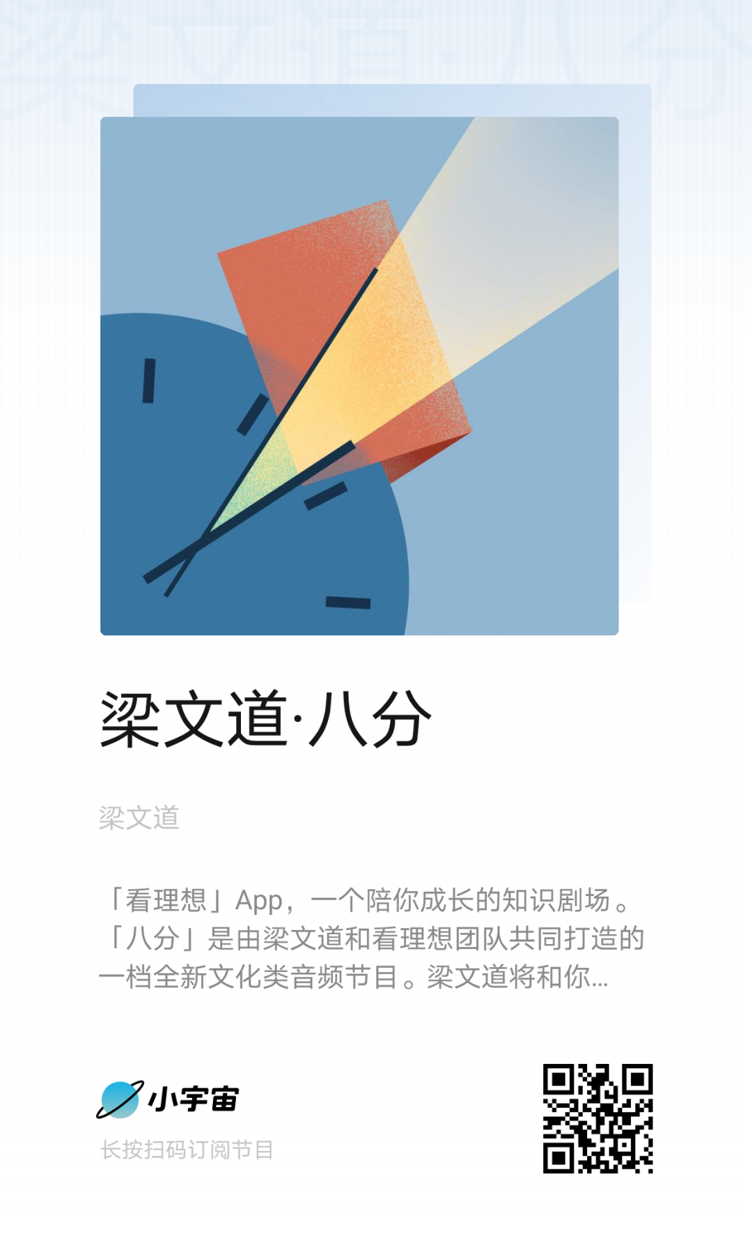 年后,梁文道和看理想重新打造了新《八分》,这是一档只有声音没有画面的播客,聊的话题不再局限于读书,还有电影、音乐、电视剧、艺术、文学现象和文化热点。