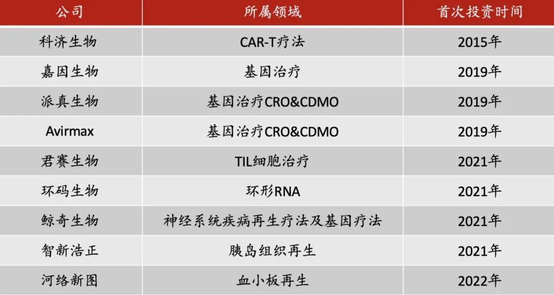 图|凯泰资本在基因和细胞领域布局