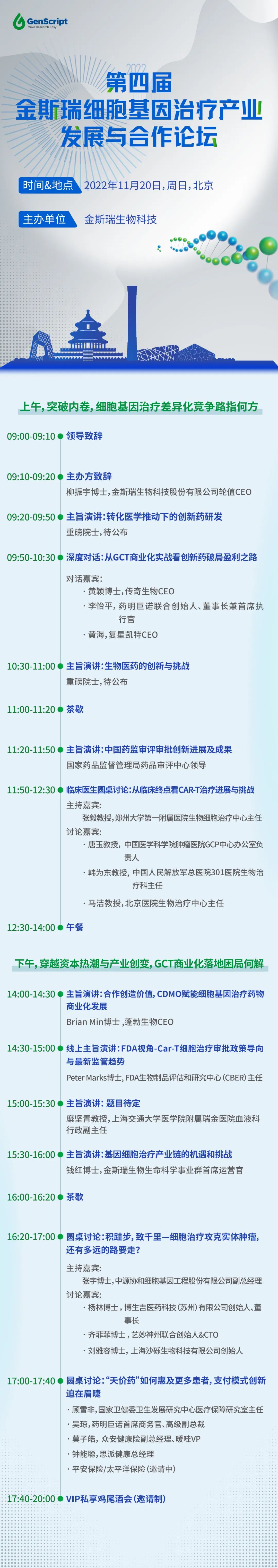 2022年11月20日第四届金斯瑞细胞基因治疗产业发展与合作论坛将再次起航,聚焦前沿热点趋势议题,500+行业大咖亲临现场,重磅院士与权威监管引领拨云见雾,临床PI与产业高层对话以研促教,齐谋发展。