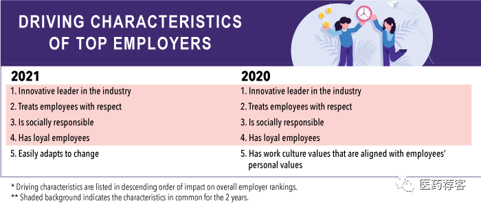 The Top Employers Survey results reveal additional fascinating finds: “Organizations that are seen as innovative leaders in the industry, who easily adapt to change, who respect their employees, have loyal employees, and are socially responsible, are selected as best in class.” In fact, being an ‘innovative leader’ continues to be the most powerful statistical driver of the selection of best companies. Interestingly, this is the first time in 20 years that the adaptability of a company is listed as paramount to the employee experience, and one can guess that this is related to employers’ responses to the pandemic and COVID-19.