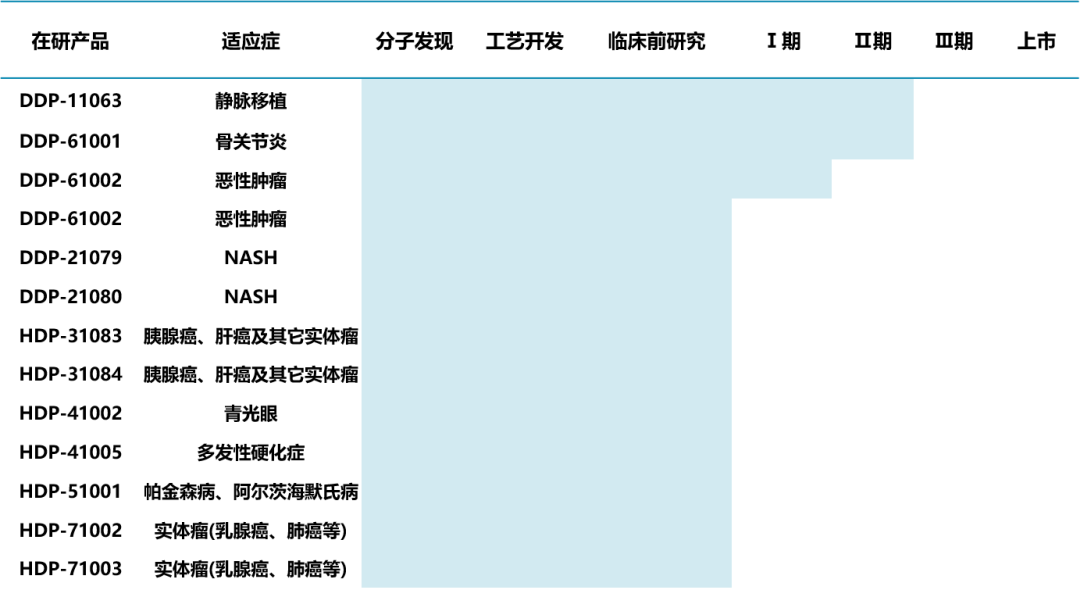 汉鼎医药首创了多药效功能PDC管线,包括DDP-11063、DDP-61001、DDP-61002等多个候选药物。其中,HDP-11063(核心专利保护至2038年)可从源头抑制胶血小板激活、抑制平滑肌细胞增殖与迁移,并在血管损伤组织局部富集以提高药效和降低副作用。HDP-21079用于多环节靶向治疗NASH/肝纤维化,可同时在血小板活化、促纤维化因子生成和肝星状细胞增殖等环节发挥抑制作用。