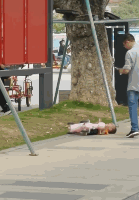 孩子摔倒了?还挺可爱的,那不着急扶,先拍照留念:来,笑一个——