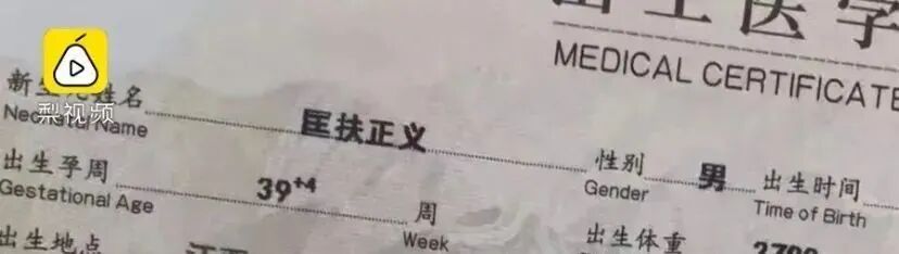 江西一对颇具使命感的匡姓家庭,给孩子起名“匡扶正义”。