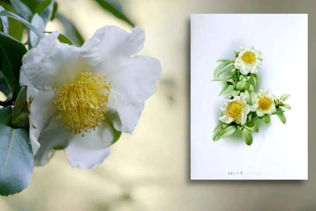 最近的新作长果大头茶(右)与实物