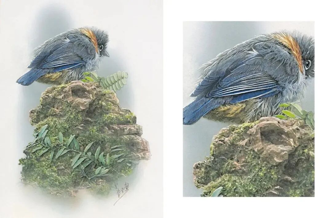 不仅画得“真”,连鸟儿落脚的生态环境,一段枝桠、一片灌木,也生动。