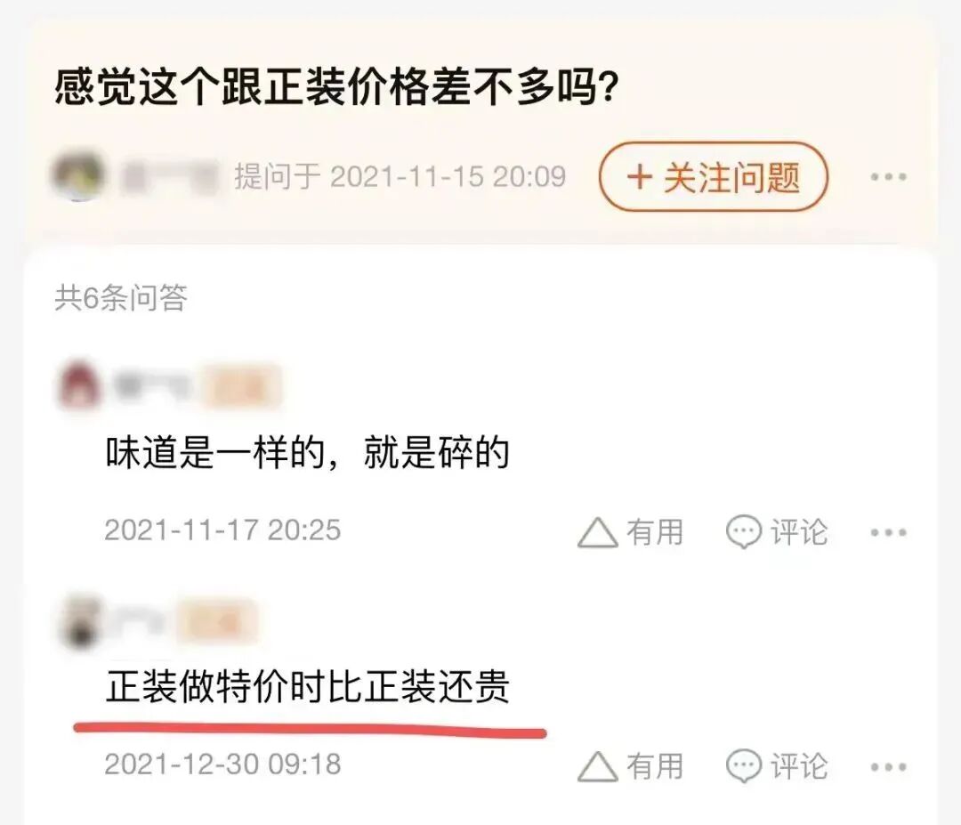 折合下来,如果同样为400克,官方店的售价只有18.9元,比小店里的“残次品”价格还低。