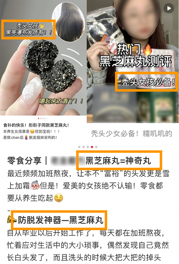 小红书上黑芝麻丸的安利魔幻了起来,青春的丸,友谊的丸,让一众脱发女孩(男孩也是吧)坚定了眼神,挺直了脊梁,举起了芝麻丸——秃头星人,永不为奴。