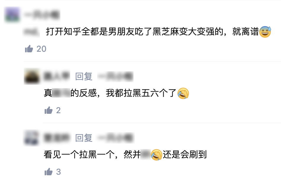 随后我们又点开了这些说黑芝麻帮男朋友变厉害的文章的留言区……