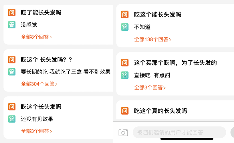 淘宝上,一大票人问吃了长头发吗,吃了长头吗,吃了长头发吗,让我们有一种多年的科普白做了的感觉。(开玩笑)