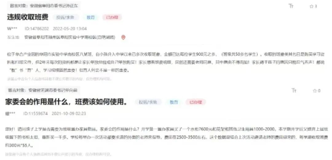 其实,在人民网领导留言板上留言的家长并不在少数。