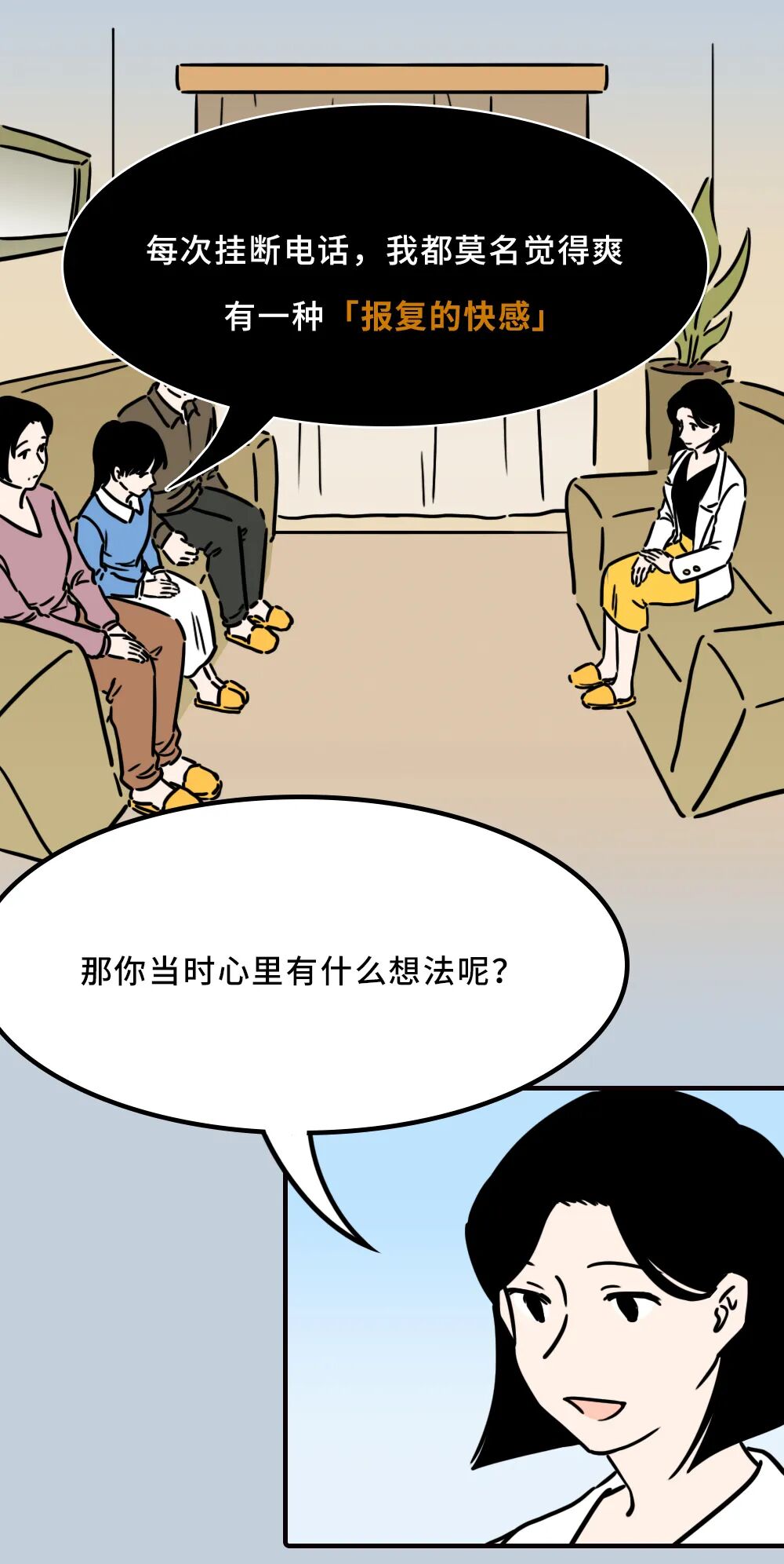 作者:脚本 : 卢克。插画: 吱唔猪。运营:小泽 。监制:陈毛毛、卢克、梁茶。本漫画来自公众号徐慢慢心理话,徐慢慢,「看见心理」旗下的心理咨询师,貌美如花,勤勤恳恳。用漫画 心理学知识抚平你的不安。微信搜索“徐慢慢心理话”即可关注。