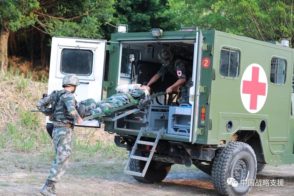 伴随一阵轰鸣,一队装甲救护车呼啸而来,28名医护人员围绕战场伤员搜寻与急救、批量伤员分级救治等11个课目连贯展开。