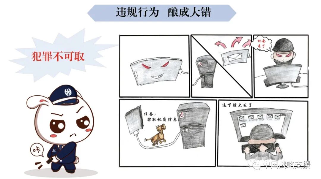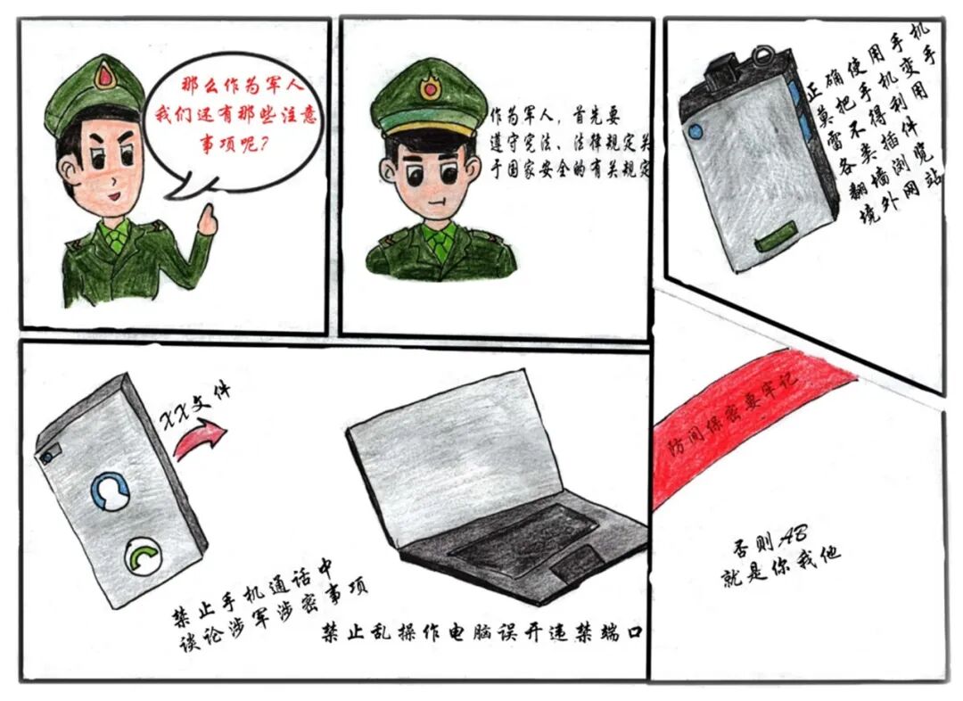 为提升防范意识,做到科学识网、依法用网、安全上网,战略支援部队某部组织官兵制作了网络安全保密教育系列漫画,帮助大家提升对网络空间和网络法治的认识,进一步强化网络安全意识,提高防范能力,筑牢网络安全“防火墙”。