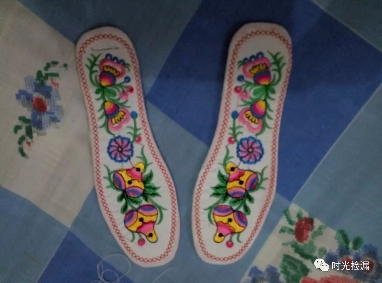 婆的容颜不老,手劲却已经赶不上十年前的功夫!千层布底鞋需要足够的力气用锥针穿透鞋底,婆做不动了,可婆却不会让自己轻松片刻——纳鞋垫又成了她的主事!鞋垫还要用到袼褙,厚度却不能和布鞋底相比,于是,每年我都会收到婆做的鞋垫,色彩艳丽的石榴图,还有画面温馨的鸳鸯戏水,婆做的鞋垫一如她做的布鞋功夫——这是无与伦比的幸福体验!