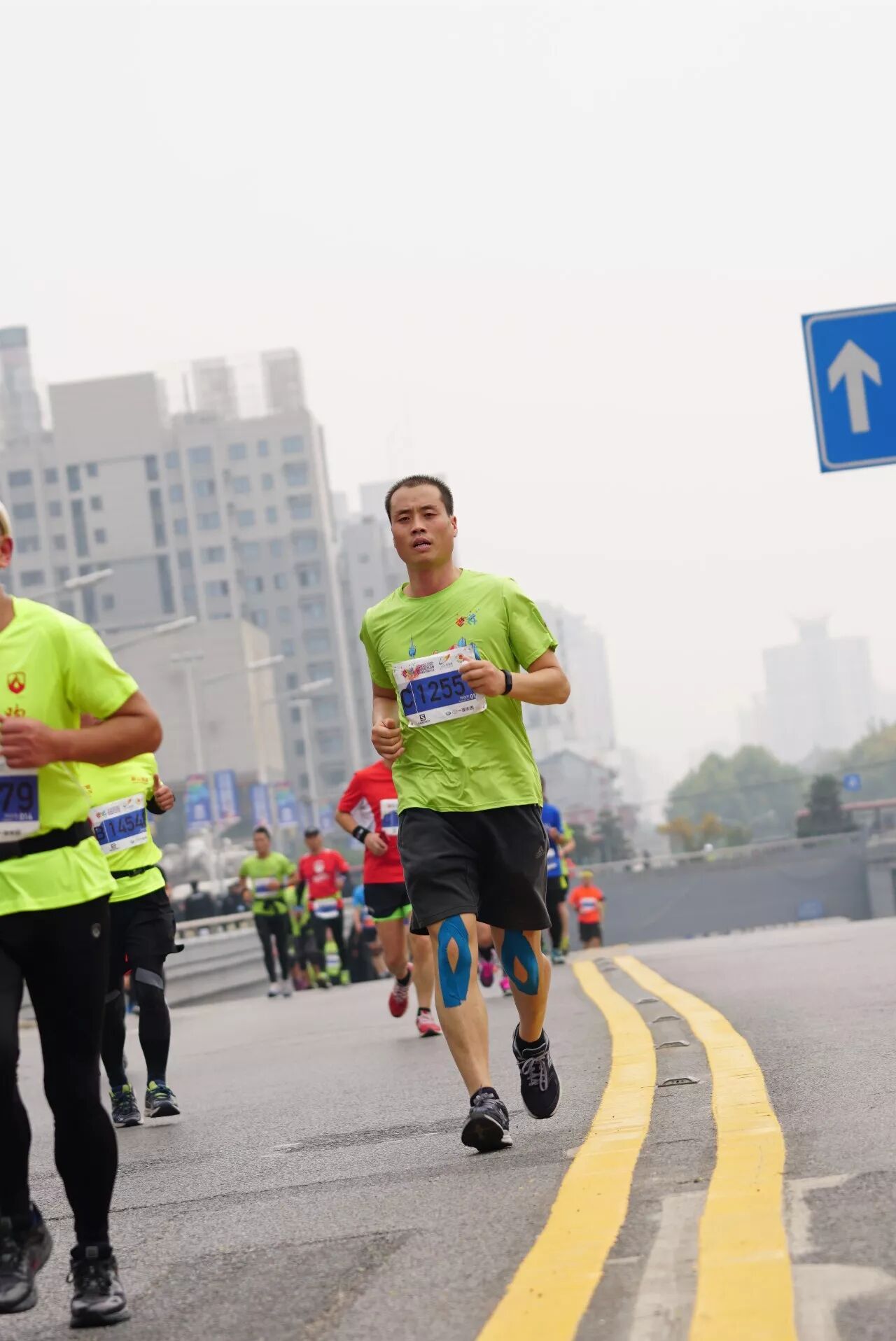 【左手拿了一块手巾,几乎每个几分钟就要擦掉满头满脸的汗珠,这张照片是最真实的样子,跑马拉松不累是骗人的鬼话!】