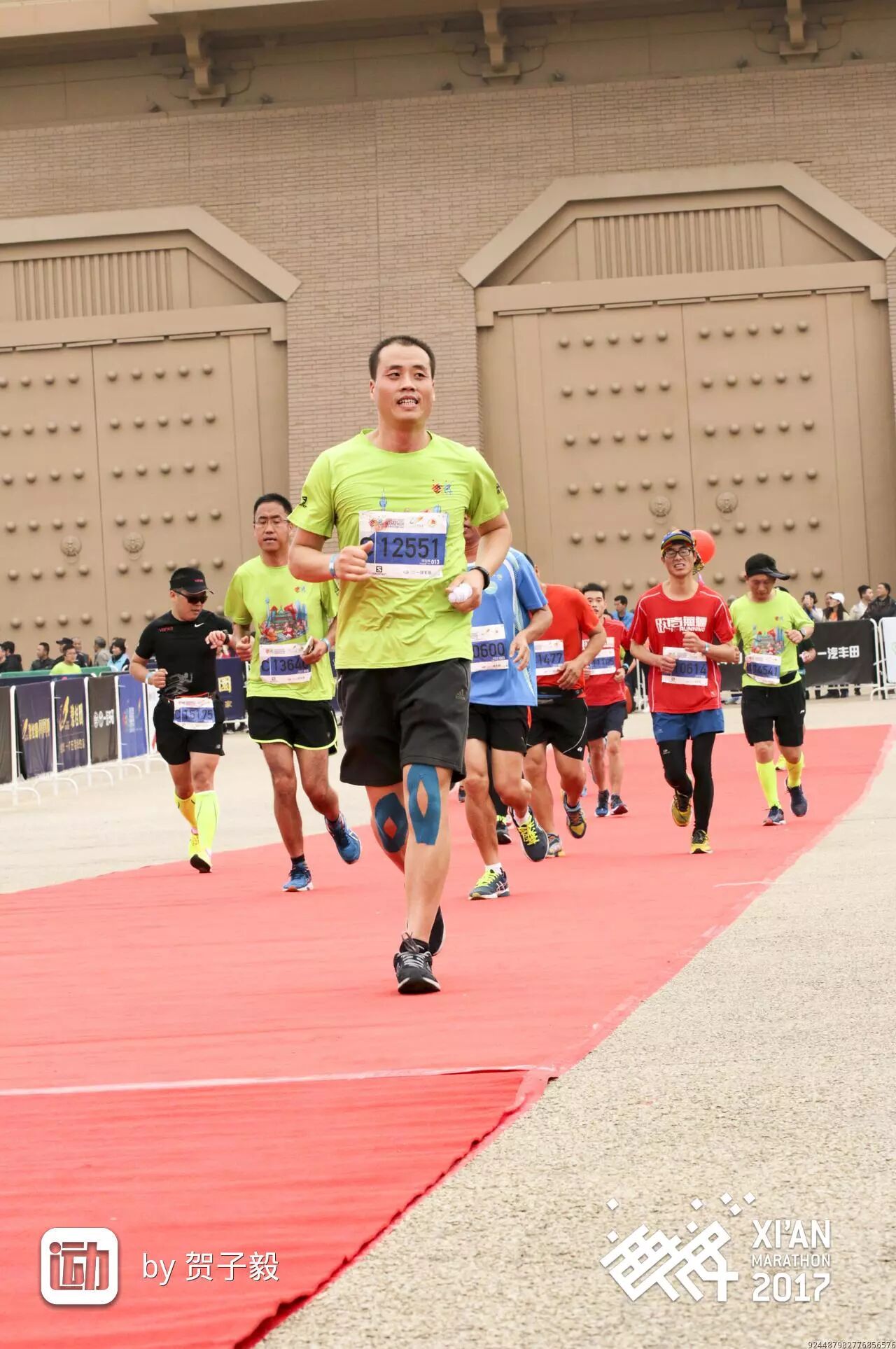 大明宫到了,熟悉的土黄色建筑进入眼帘,可这最后的两公里竟成了脚下最漫长的距离!我看看表,心想是不是去冲刺一番,让自己的最好成绩再突破一点,心里这么想,两条腿却提不起劲!好吧,就这样匀速前进,偌大的公园了绕了好几个大圈,终于看见前方二百米处的终点拱门,一条红地毯从脚下延伸到了终点的另一侧!我不舍得将最后的二百米当成冲刺时间,我依然慢慢地前进,享受走过红毯的感觉!前方十余位摄影师的镜头都对准了我,一瞬间,我就成了最幸福的人,42公里的支撑就是为了享受冲过终点的快感。巨大的幸福开始铺天盖地地向我袭来,不用闪躲,不用刻意逢迎,平静地享受这一刻,享受只有一个人的伟大,这便是42.195公里给予我的最好馈赠!