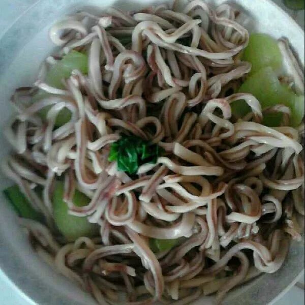母亲那时也常用做“花花面”的办法做农家人喜欢的削筋吃,因为削筋相比面条厚实一些,可以多用些高粱面,腾省出有限的麦面来。