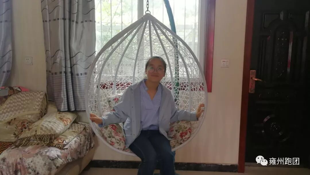 客厅宽阔,有沙发,有茶海,临窗还有一副吊篮。品茗之余,可以把身体安放进去,飘来荡去,甚是逍遥。