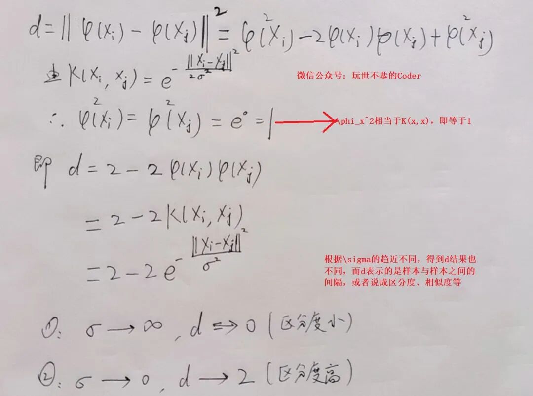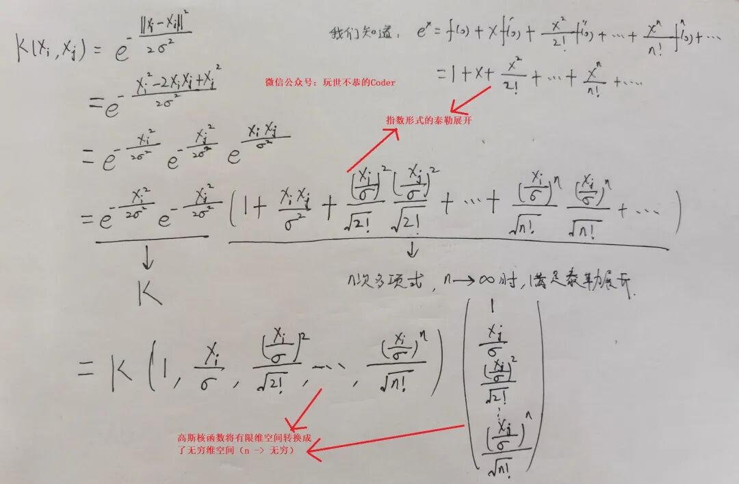 如图可见,当时,此时的泰勒展开就相当于指数形式,即高斯核函数其实是一种无穷维映射所得到的结果。