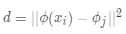 由上图,我们首先定义了两个二维向量的样本,然后将其通过映射函数进行处理,处理成了一个三维向量的形式。通过计算可以发现,此时,我们令