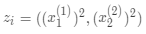 由于此时我们的数据集是非线性可分的,所以需要对属性特征进行映射,映射之后变成: