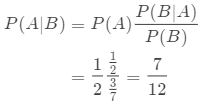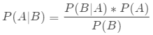 P(A|B)称为"后验概率"(Posterior probability),即在B事件发生之后,我们对A事件概率的重新评估,这个时候就要考虑事件B了。