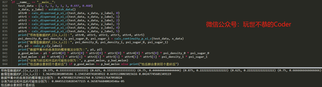在本节内容中,我们主要用周志华老师的西瓜书上的一个例子来理解下贝叶斯的应用,随后会通过代码的形式来解决问题。总体上的过程与上述例子大致相同,主要在于读者对于不同的问题要学会变通,要学会对问题的转换。就像《周易》里说的那样,穷则变,变则通,通则久。这一点还是挺重要的,尤其是对于我们学生来讲。
