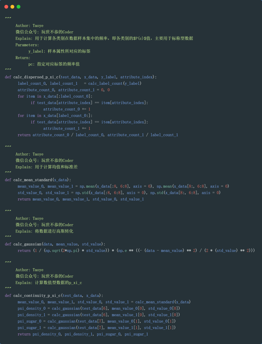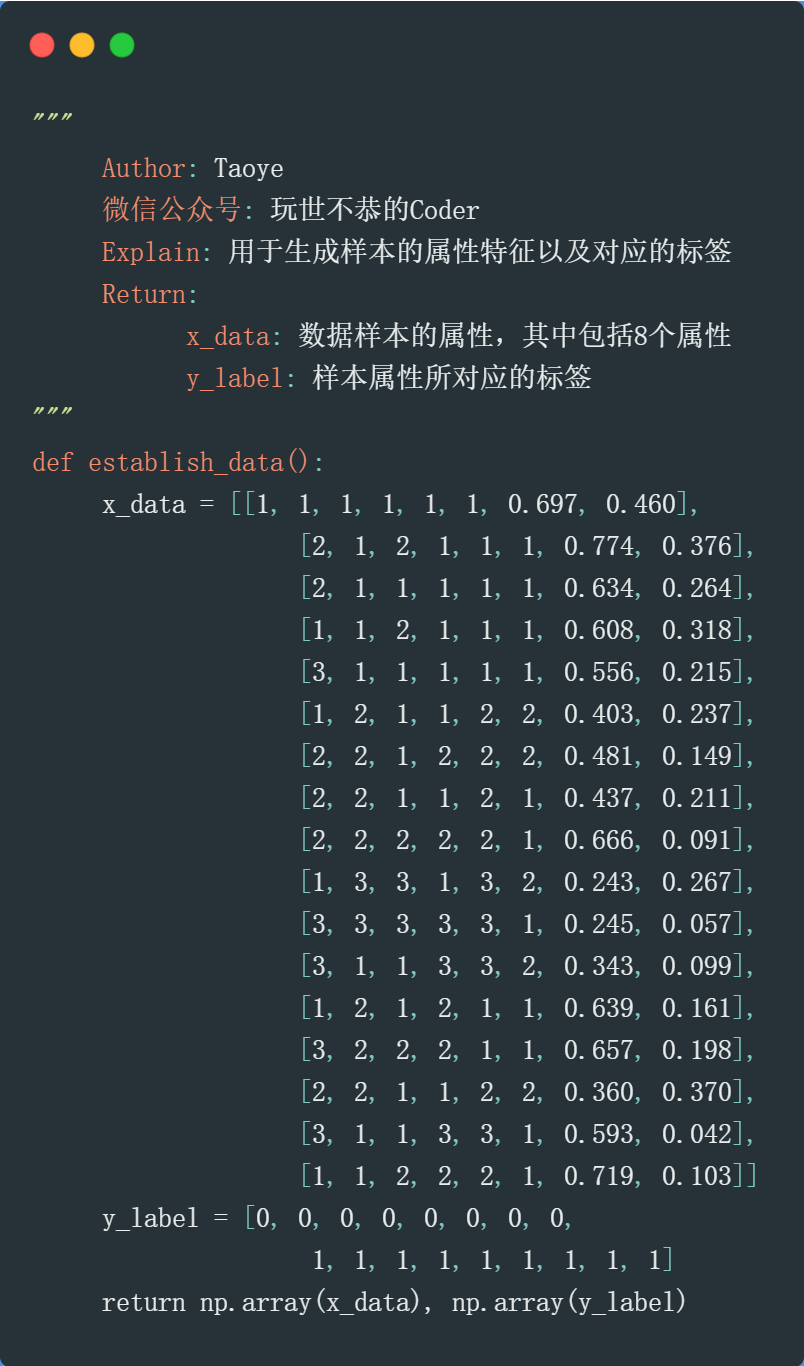 这第三部分的内容主要是通过一个西瓜的案例来给大伙进行一下贝叶斯实战,Taoye命名为:“吃瓜群众”应该恰好瓜还是坏瓜。此“吃瓜群众”就单纯字面上的意思,而非网络用语之“梗”。另外,在这部分内容里面,还会详细介绍标称型数据和数值型数据的具体处理方式,以及常用的“平滑”处理——拉普拉斯修正。当然了,这部分内容还是会照常给大家通过代码的形式来实战这个案例。