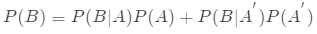 这就是全概率公式。它的含义是,如果A和A'构成样本空间的一个划分,那么事件B的概率,就等于A和A'的概率分别乘以B对这两个事件的条件概率之和。