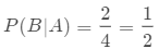 而表示的是在1号罐子中选中白色石头的概率,我们知道1号罐子中有四块石头,其中有两块是白色的,所以: