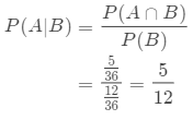 我们知道,每颗筛子有6种可能,抛掷两颗筛子总共有36种可能(6x6=36),对吧?而事件A和事件B同时发生的可能有5种,即,而事件A发生的可能有12种,所以
