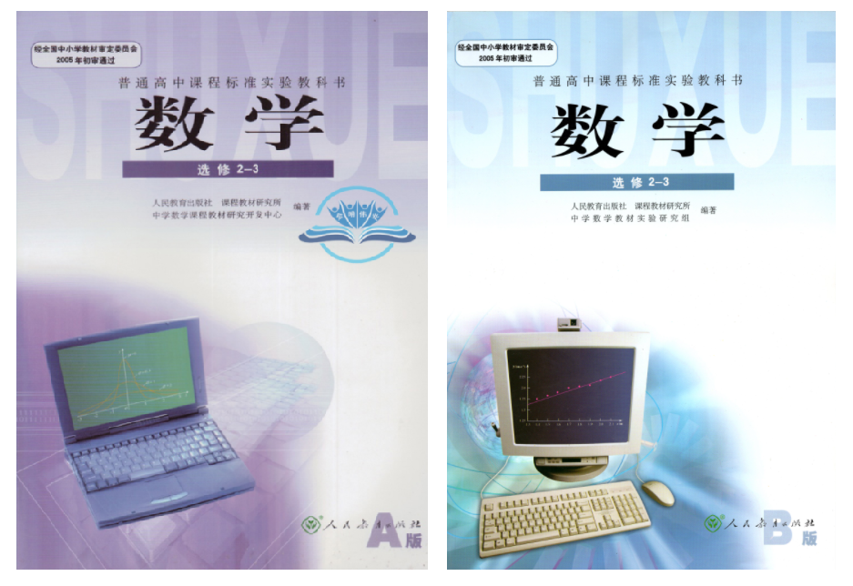 Taoye还特意给大家找出了这本书,就是数学 选修2-3。如果有机会再夕拾这本书的话,一定会非常的有意思,想想就有点刺激。总共分为A、B版两本,喏,就是紫色皮皮和蓝色皮皮的这本“神书”(有机会一定要夕拾一哈):