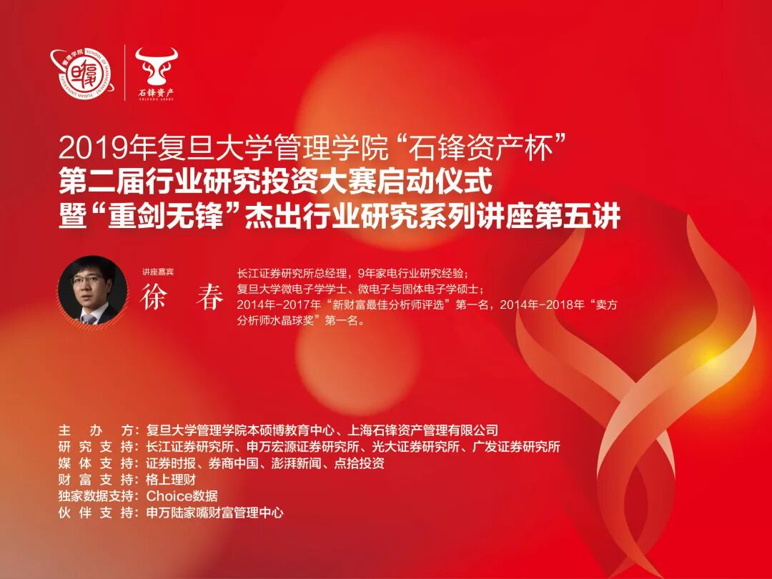 12月4日晚,复旦大学管理学院“石锋资产杯”第二届行业研究投资大赛启动仪式,暨“重剑无锋”杰出行业研究系列讲座第五讲正式召开!