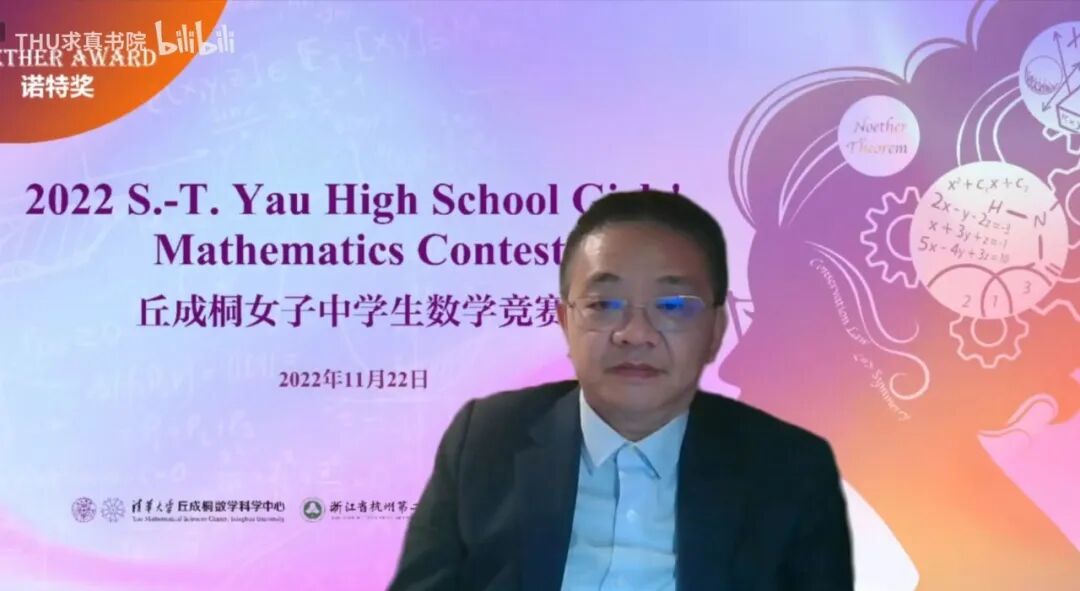 大赛主席、清华大学讲席教授丘成桐院士,清华大学副校长、教务长彭刚教授,杭州市教育局副局长蒋锋出席颁奖典礼并致辞。浙江大学章敏教授主持典礼。复旦大学李骏院士,浙江大学孙斌勇院士,清华大学林勇教授、刘正伟教授,东南大学李逸教授,浙江大学徐浩教授等专家学者,以及各地中学校长代表、优秀参赛选手时空连线,云端齐聚,共同见证别开生面的荣光时刻。