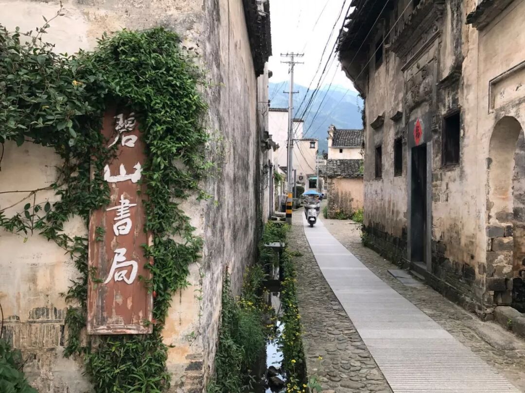 阴雨连绵一天,经了雨的碧山村显得更为安宁,又净又静。徽派建筑的白墙黛瓦、远处群山与田野的绿包裹在朦胧雾气中,相较晴日,这是更为珍贵的色彩。